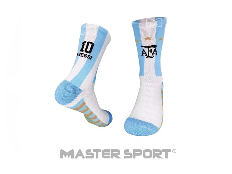זוג גרבי ילדים מדגם מסי ארגנטינה 10. גרביים לילדים ונוער המתאימות לשימוש יומיומי ולמטרות ספורט שונות.