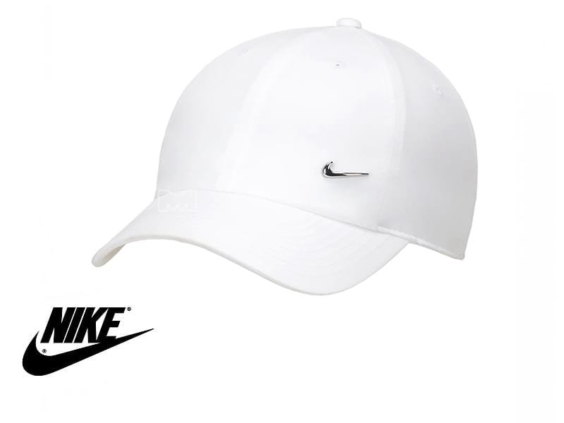כובע מצחייה בצבע לבן עם לוגו מטאלי של נייקי בחזית.