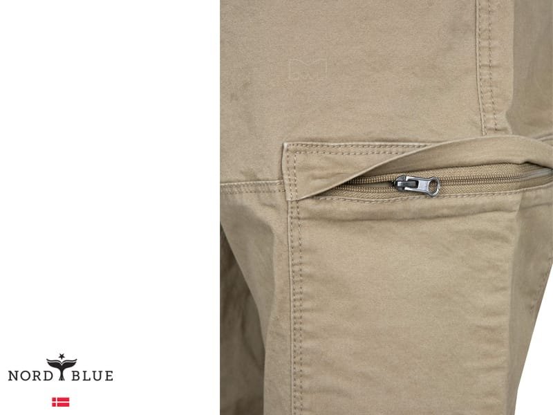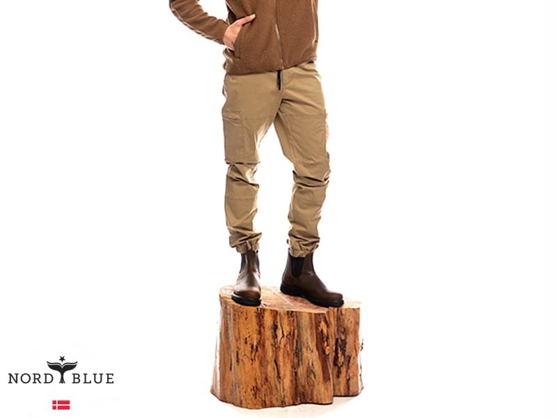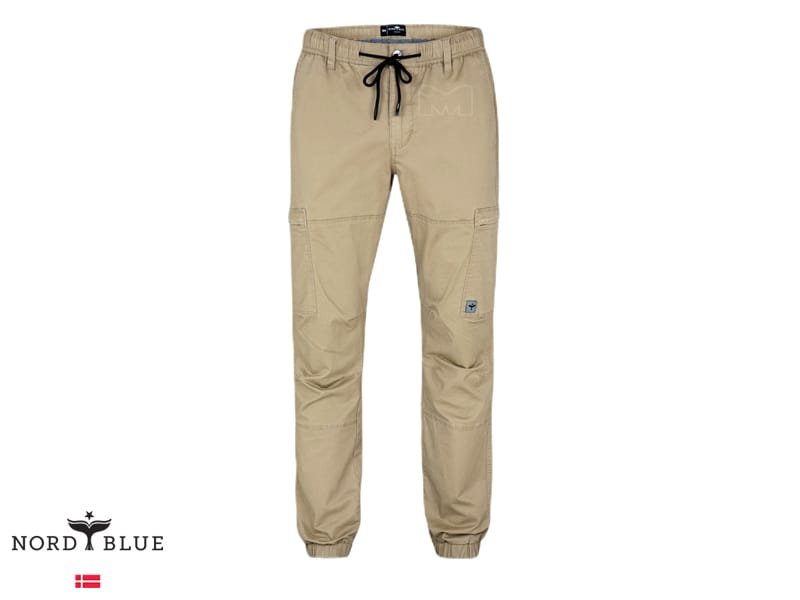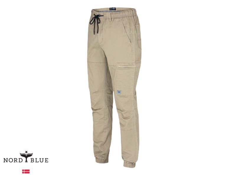 מכנסי דגמ"ח אופנתיות מבית נורד בלו NORD BLUE. למכנסיים רצועת גומי במותן עם שרוך קשירה, לולאות חגורה, כיסים בצדדים וכיסים מאחור. סגירת רוכסן עם כפתור בחזית.