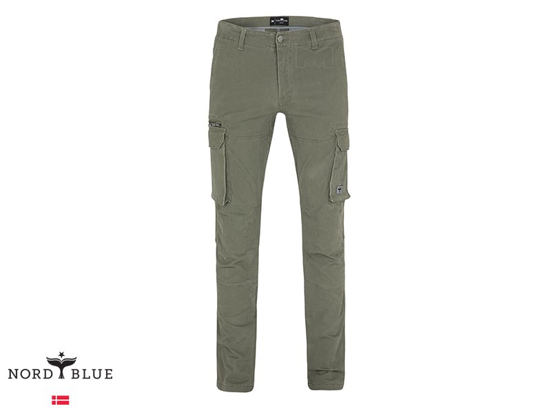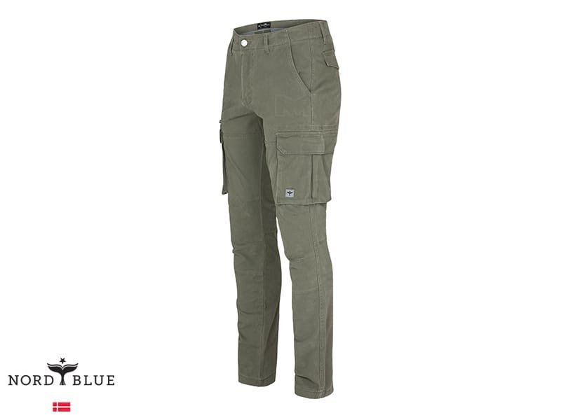 מכנסי קרגו מבד סטרץ' מבית נורד בלו NORD BLUE. למכנסיים לולאות לחגורה, כיסים בצדדים וכיסים מאחור. סגירת רוכסן עם כפתור בחזית.