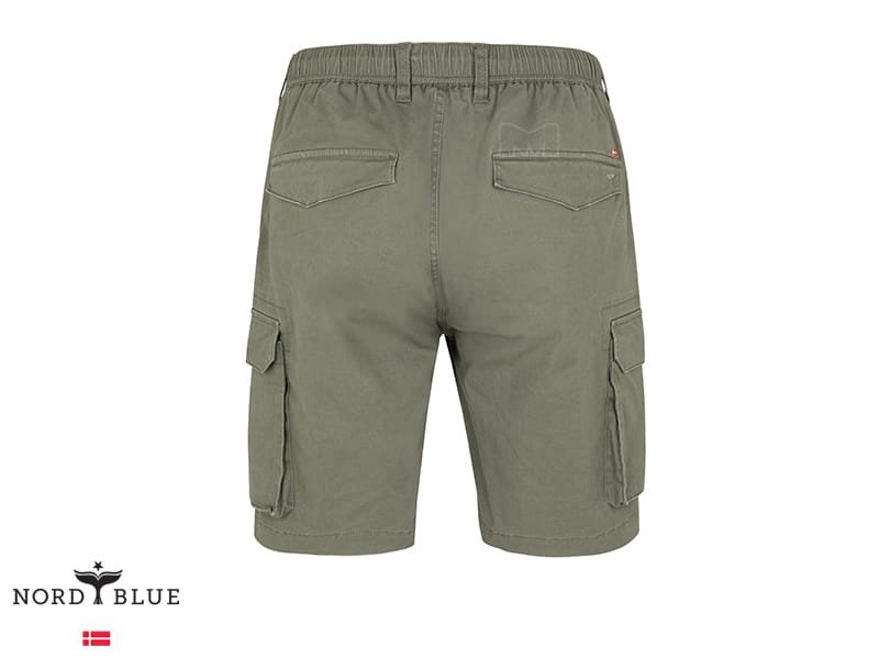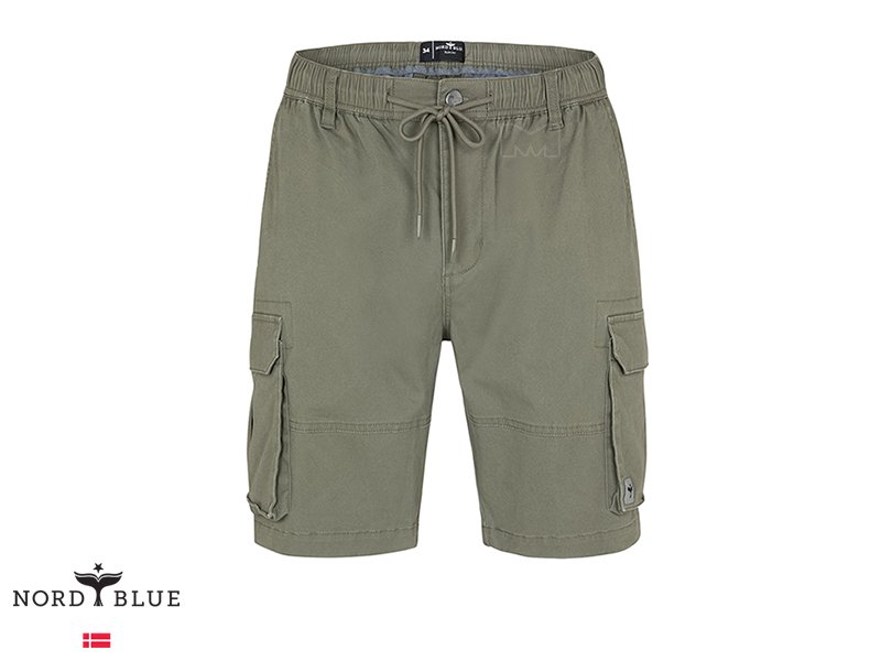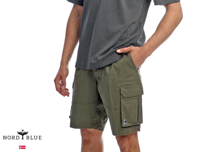 מכנסי קרגו קצרים מבית נורד בלו NORD BLUE. למכנסיים רצועת גומי במותן עם שרוך קשירה ולולאות לחגורה. כיסים בצדדים וכיסים מאחור וסגירת רוכסן עם כפתור בחזית.