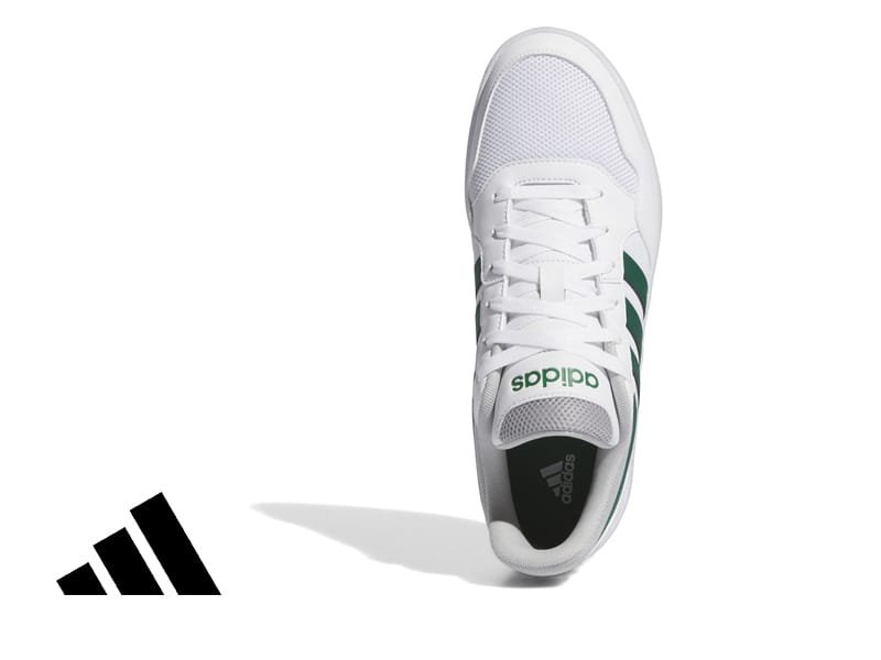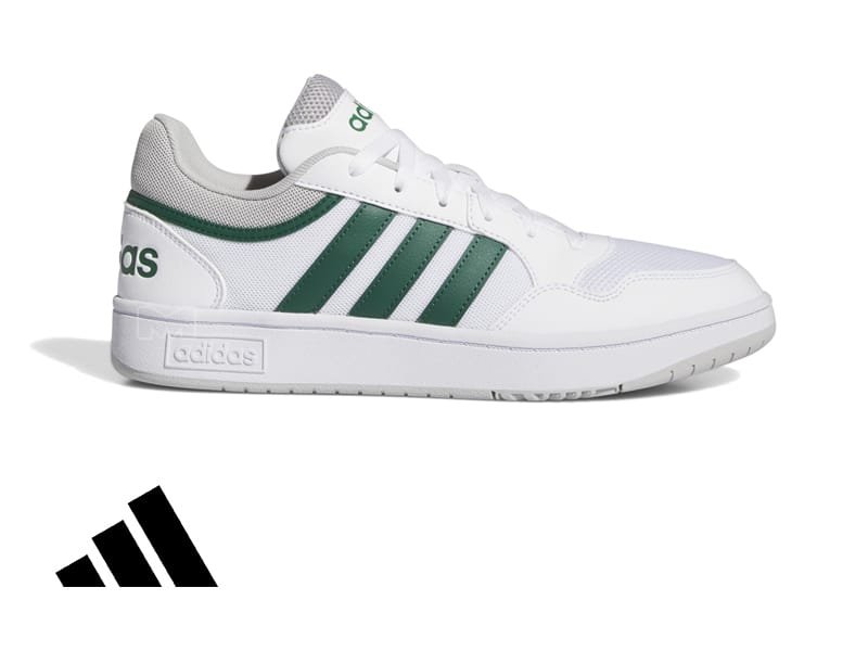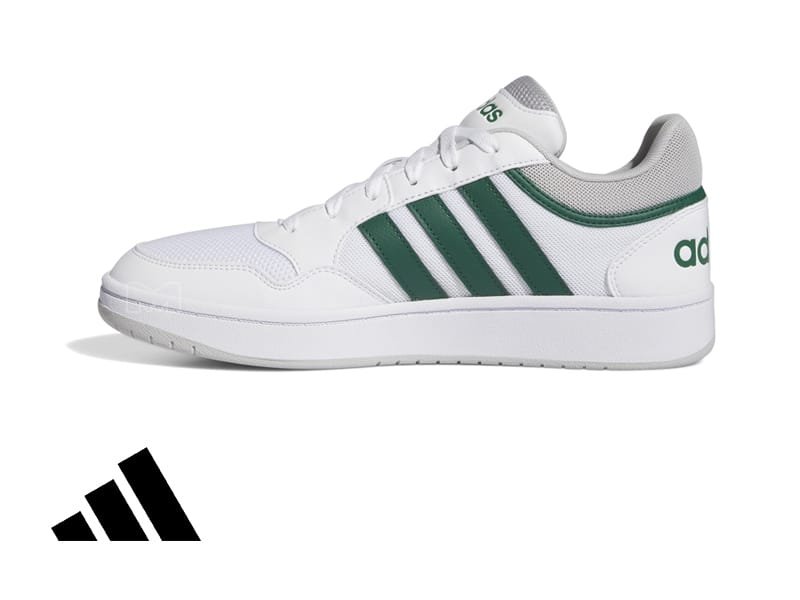 נעלי אדידס בעיצוב אופנתי. דגם חדש מסדרת ה-HOOPS של אדידס. נעליים המתאימות להליכה יומיומית ולכדורסל.