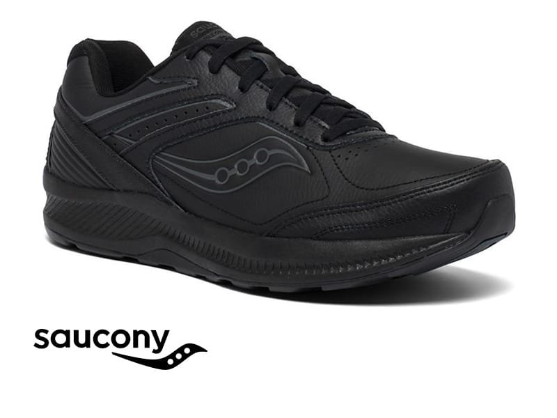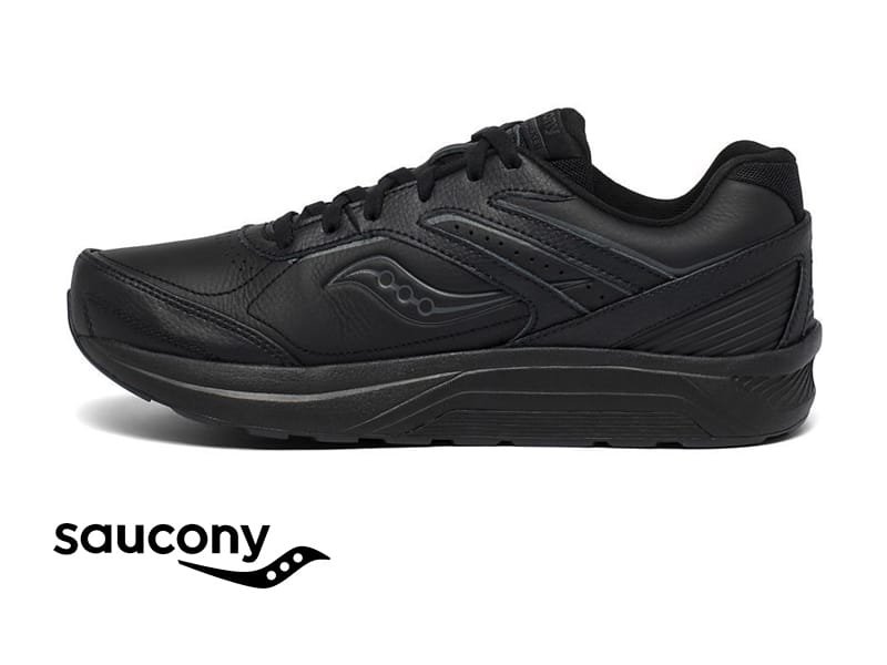 נעלי הליכה לגברים מבית סאקוני. נעליים קלות ונוחות בעלות סוליה רכה במיוחד. גפה מעור בצבע שחור מדגם אשלון, נעל רחבה (WIDE).