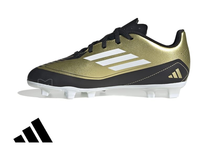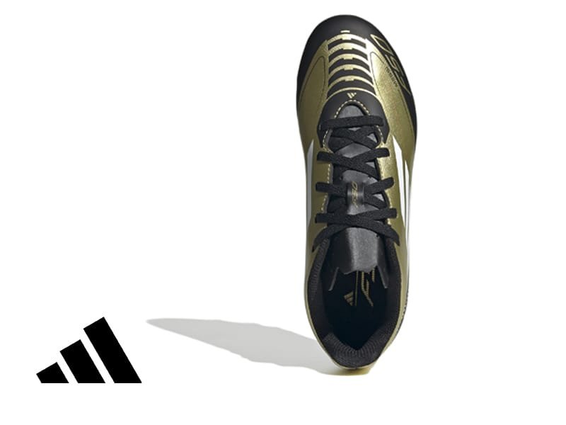 נעלי כדורגל אדידס מסי לילדים בצבע זהב בשילוב שחור ולבן.