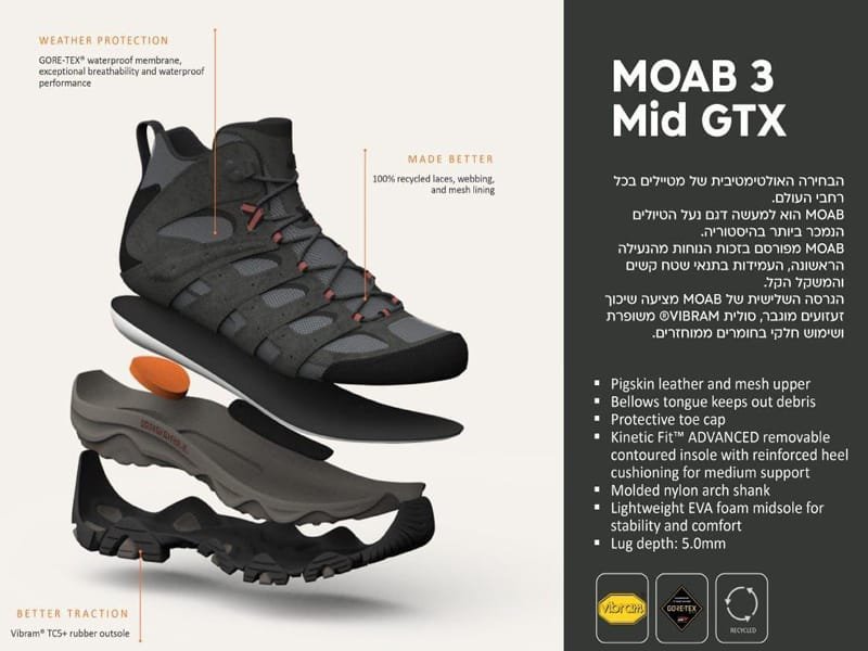 נעלי המתאימות לטיפוס הרים, טיולים ולמסעות מדגם מואב- MOAB MID.